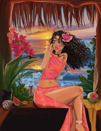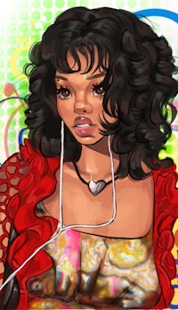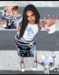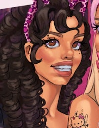Amara is the second sibling of Lilithzplug, also known as Amara Jr., named directly after the creator herself. Recognized for her ethereal, water-like energy and presence, she has big, voluminous black curls and frequently switches up her style. Within the Lilithzplug lore—as well as in real life—in the animated lore version of Lilithzplug, Amara J is the main songwriter of the three, and she’s the sibling who came up with the idea of starting a group together.