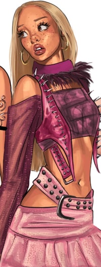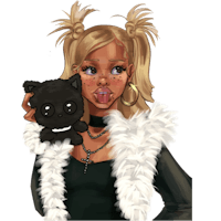 Melody is the youngest sister of Lilithzplug. Nicknamed “Mel,” she openly embraces her neurodivergence, reflecting the creator in real life, and is recognized for her cute, quirky, and delightfully weird-girl energy. She has a voluminous, blonde curly afro—her choice to dye her hair wasn’t to separate herself from her identical sisters, but rather to express her individuality both in the Lilithzplug lore and in real life.